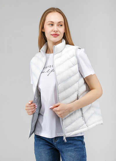 • Женский жилет от бренда Thomas Graf. Свободная модель. Воротник-стойка. Застежка на молнию. Карманы по бокам на молнии. В комплекте компактный мешок.