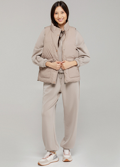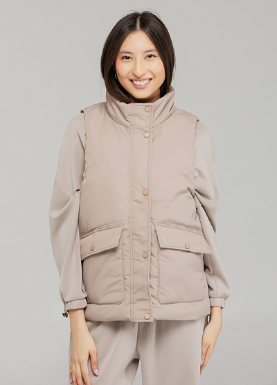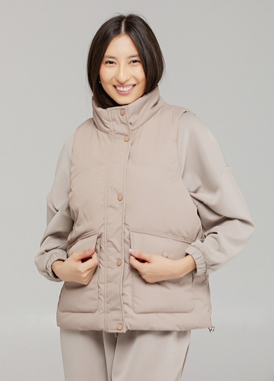 • Базовая утеплённая жилетка в бежевом цвете — комфорт и минимализм в каждой детали: