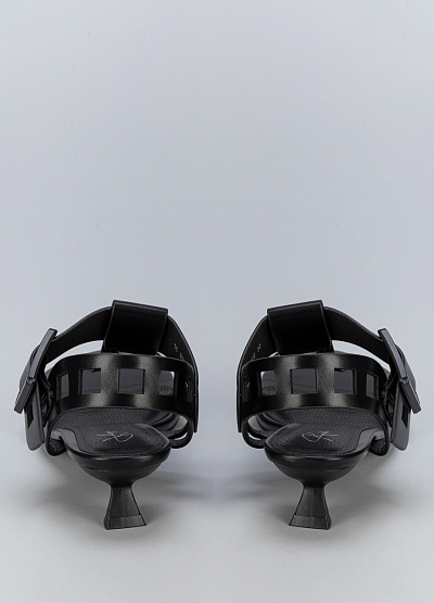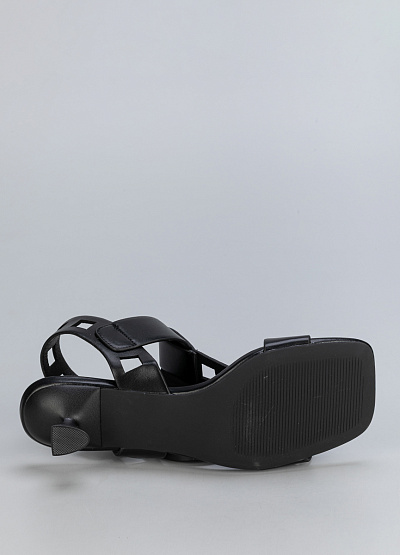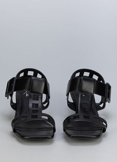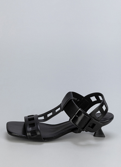 • Женские босоножки на каблуке, чёрные — современная геометрия.
