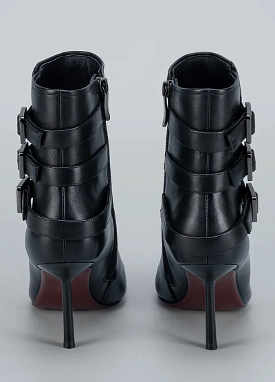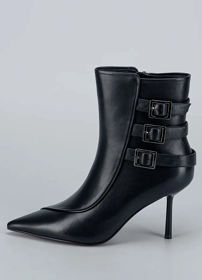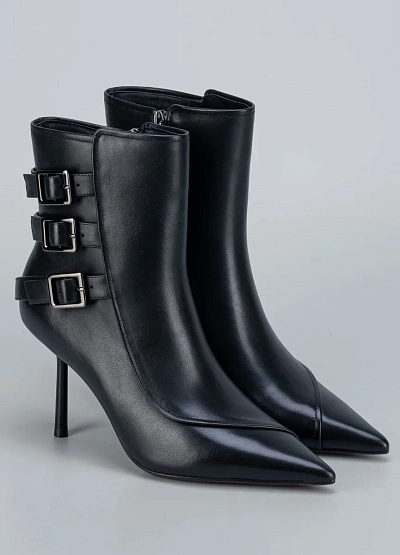 • Женские ботильоны Loretta Very — стильная интерпретация классики с нотками дерзости. Выполненные из гладкой натуральной кожи, они сочетают изящный силуэт с выразительными ремешками и металлическими пряжками. Заострённый мыс и тонкий каблук-шпилька визуально удлиняют ногу, делая образ утончённым и уверенным.