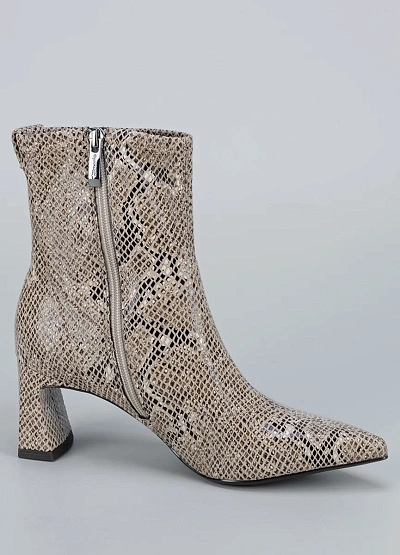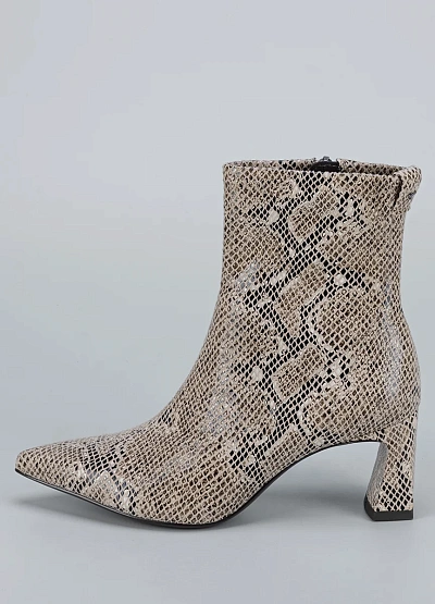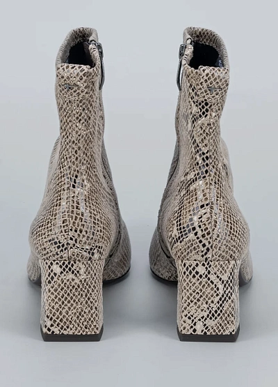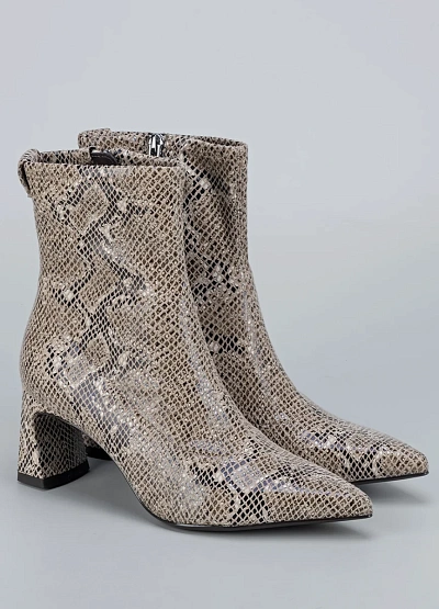 • Женские ботильоны с эффектом под змеиную кожу. Остроконечный нос и фигурный каблук придают модели изысканный и дерзкий характер. Обувь идеально дополняет нарядный образ и добавляет нотку роскоши в повседневный стиль.