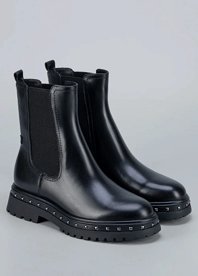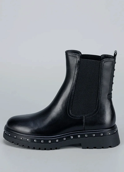 • Женские ботинки Tamaris в стиле «челси» с эластичными вставками по бокам и декором из металлических заклёпок. Практичная модель из гладкой кожи удобна при ежедневной носке. Толстая подошва с протектором делает обувь устойчивой и комфортной.