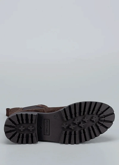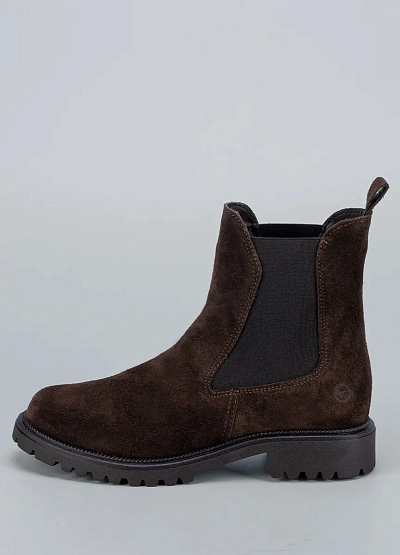• Женские ботинки-челси Tamaris из мягкой коричневой замши — сочетание классики и уюта. Эластичные вставки облегчают обувание, а утолщённая подошва с протектором обеспечивает надёжность и комфорт при ходьбе.
