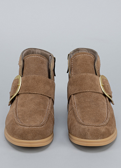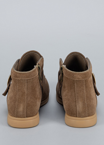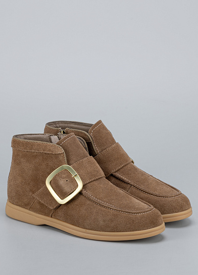 • Женские ботильоны Franco Manatti из натуральной замши в тёплом бежевом оттенке — воплощение стиля и изысканности. Элегантная форма сочетается с мягкой фактурой материала, создавая утончённый образ на каждый день. Широкая ременная застёжка с крупной металлической пряжкой добавляет модели актуальности и лёгкого акцента роскоши. Удобная колодка и лёгкая подошва обеспечивают комфорт при длительной носке.