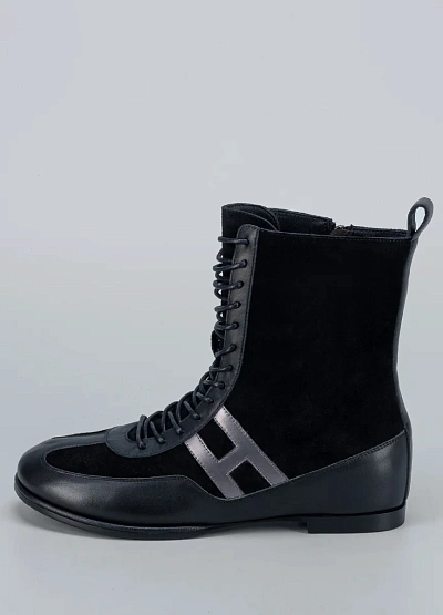 • Женские ботинки Loretta Very — оригинальная модель, сочетающая спортивную динамику и изысканную женственность. Верх выполнен из комбинации мягкой замши и гладкой кожи, что создаёт выразительный контраст фактур. Шнуровка по всей высоте придаёт образу утончённость, а боковая молния делает обувь максимально удобной в использовании. Металлизированная вставка в форме буквы «H» добавляет современный акцент и подчёркивает стиль бренда.
