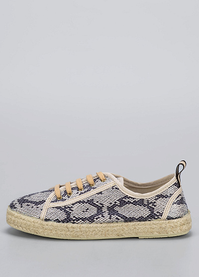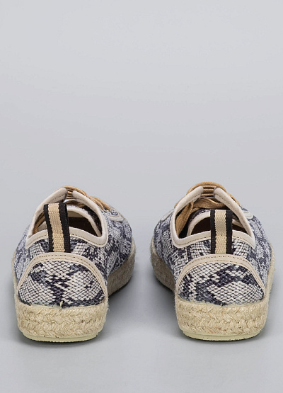 • Ультрамодные женские кеды с эффектным змеиным принтом. Сочетают в себе комфорт кед и природную эстетику эспадрилий — идеально для городских прогулок и летних образов. Лёгкий верх из текстиля и плетёная подошва обеспечивают хорошую вентиляцию и устойчивость. Отличный выбор для тех, кто ценит стиль и удобство.