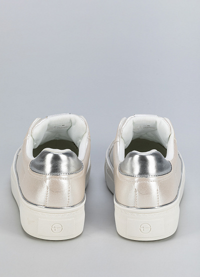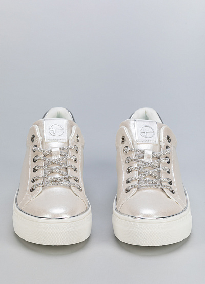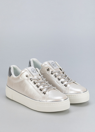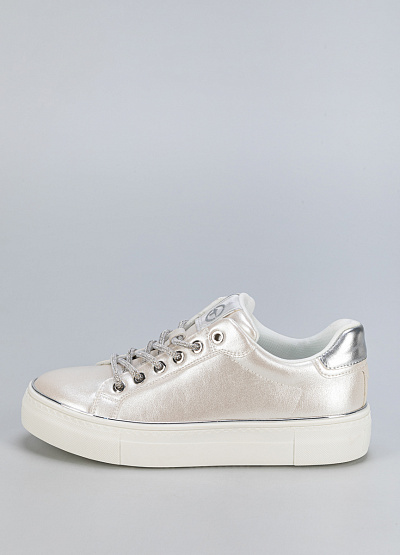 • Женские кеды в тёплом сером оттенке — нейтральный и стильный элемент образа.