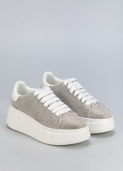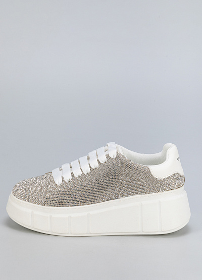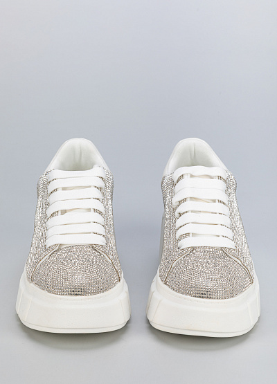 • Женские кроссовки в светлом серо-бежевом оттенке с элементами из сетки.