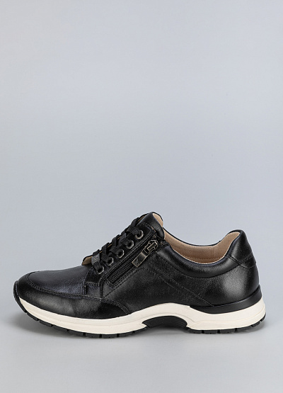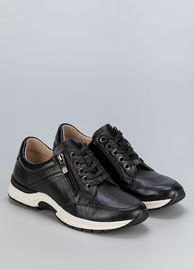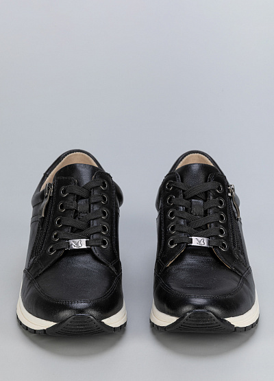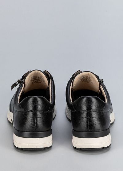 • Женские черные кроссовки из кожи — практичная модель с продуманной анатомией для комфорта и поддержки.