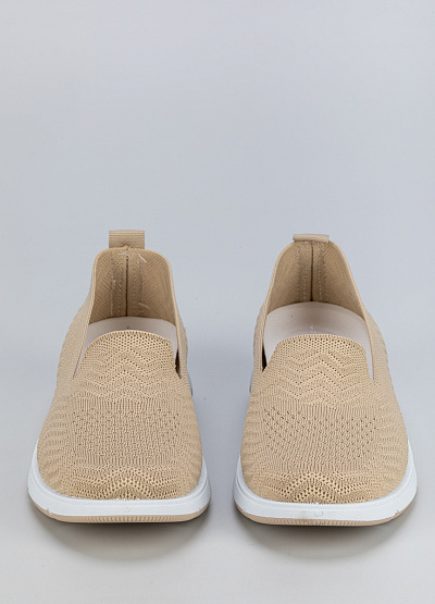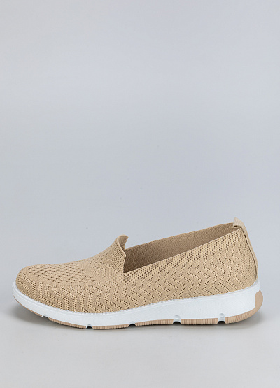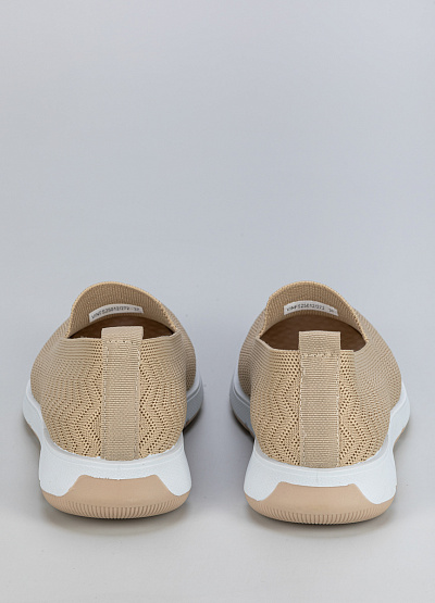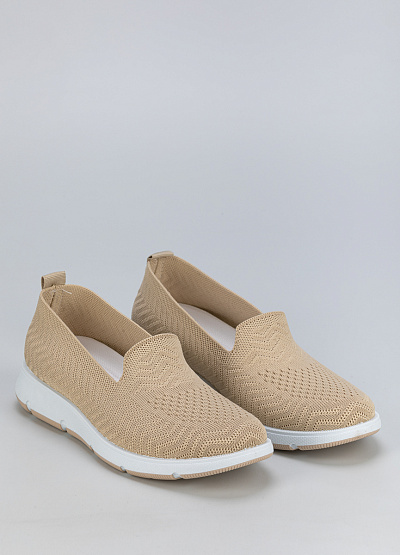 • Женские бежевые слипоны из текстиля в стиле casual, подходят для повседневной носки и отдыха.