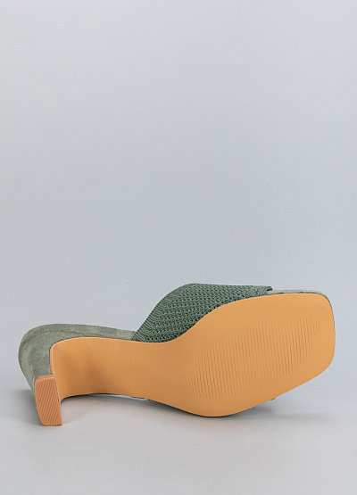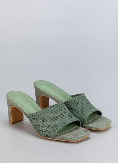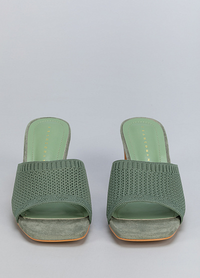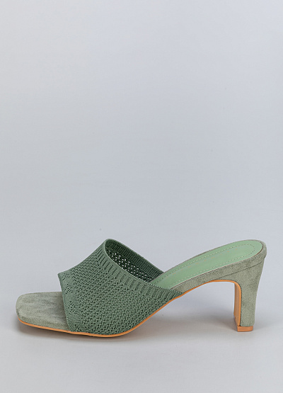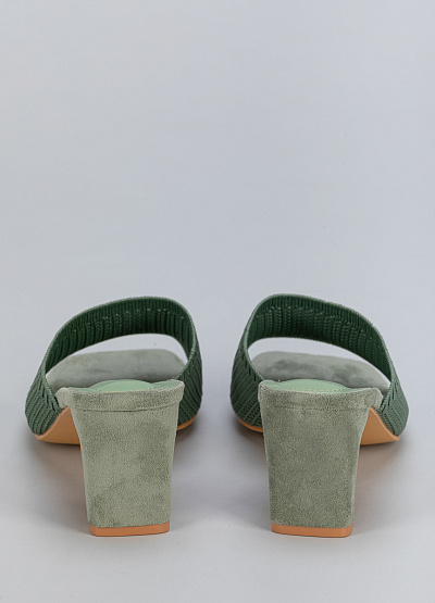 • Женственные мюли на каблуке в модном оттенке шалфея — стильный акцент летнего гардероба.