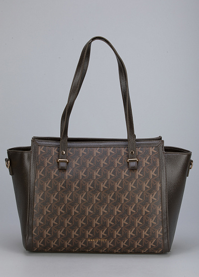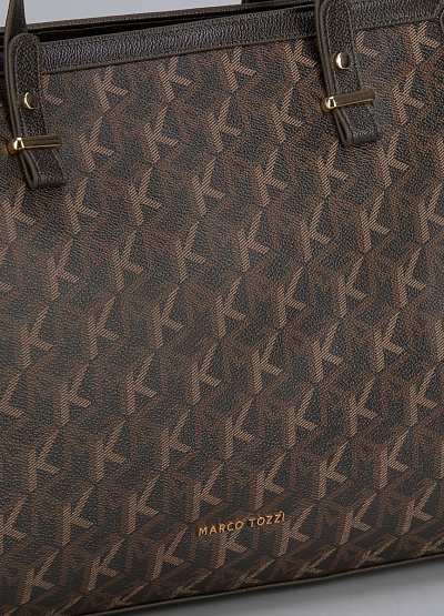 • Женская сумка из экокожи от бренда Marco Tozzi. Модель с двумя ручками. Принт. Застежка на молнию. Логотип по центру. Тонкий ремешок на плечо в комплекте. Серебристая фурнитура.