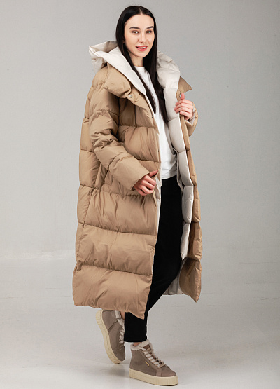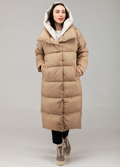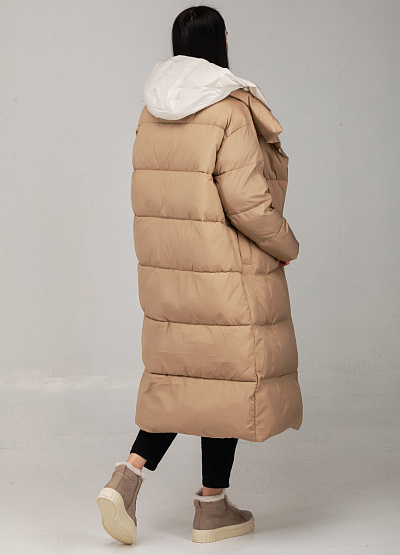 • Женская куртка от бренда Evacana. Модель прямого кроя. Капюшон. Застежка на кнопки. Два кармана по бокам.