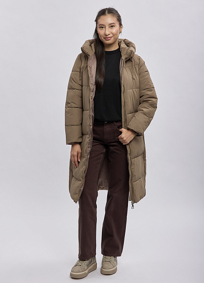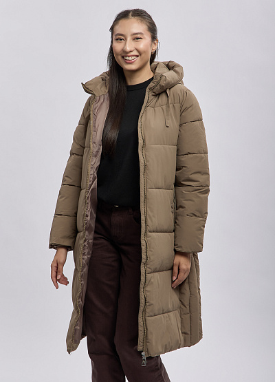 • Удобное удлинённое зимнее пальто-пуховик Thomas Graf в тёплом песочно-оливковом оттенке создано для максимального комфорта в холодный сезон. Модель выполнена с крупной горизонтальной стёжкой, которая удерживает тепло и равномерно распределяет утеплитель. Объёмный капюшон с утяжками защищает от ветра и снега, а мягкая внутренняя отделка горловины обеспечивает дополнительное тепло. Прямой крой не стесняет движений и подходит для повседневной носки. Боковые карманы на кнопках идеально подходят для согревания рук и хранения мелочей.