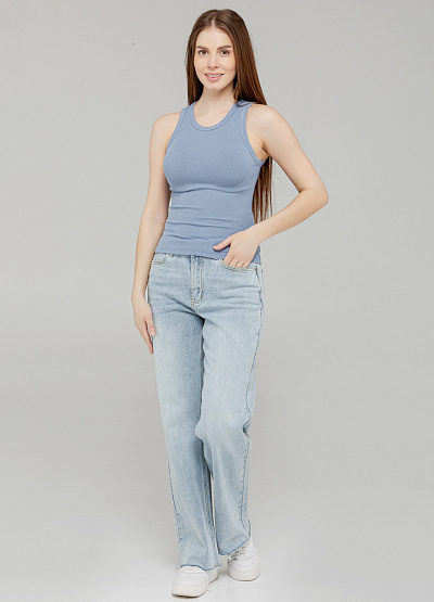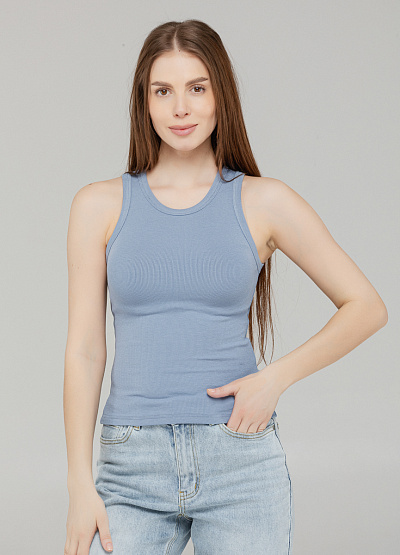 • Топ в рубчик – незаменимая вещь в гардеробе каждой девушки. Эта модель в нежном голубом оттенке выполнена из мягкого эластичного трикотажа, который комфортно облегает фигуру. Благодаря базовому крою и широким проймам, майка отлично подойдёт для повседневной носки, спорта или в качестве нижнего слоя под рубашку или жакет. Идеальный вариант для жарких дней или стильных многослойных образов. Сочетается с джинсами, юбками, шортами и любыми casual-комплектами.
