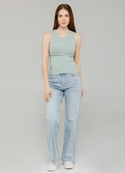 • Топ в рубчик – незаменимая вещь в гардеробе каждой девушки. Эта модель в нежном зеленом оттенке выполнена из мягкого эластичного трикотажа, который комфортно облегает фигуру. Благодаря базовому крою и широким проймам, майка отлично подойдёт для повседневной носки, спорта или в качестве нижнего слоя под рубашку или жакет. Идеальный вариант для жарких дней или стильных многослойных образов. Сочетается с джинсами, юбками, шортами и любыми casual-комплектами.