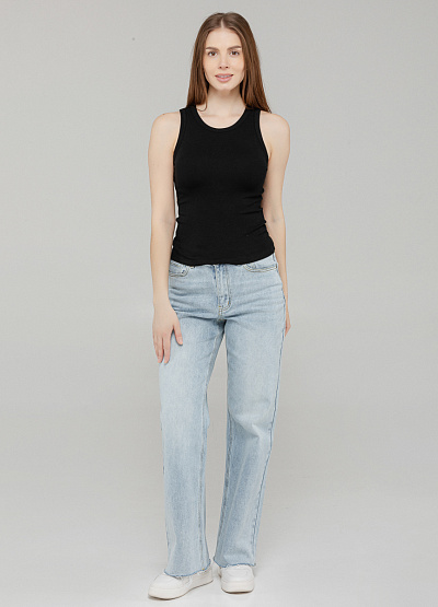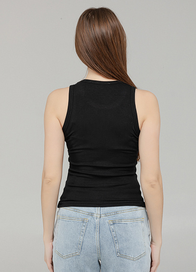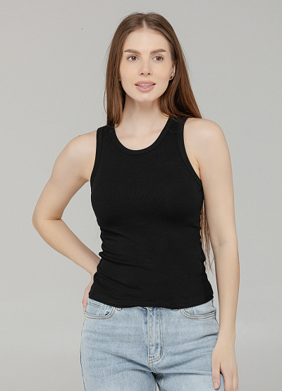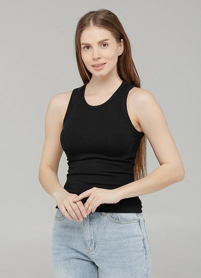 • Топ в рубчик – незаменимая вещь в гардеробе каждой девушки. Эта модель в черном оттенке выполнена из мягкого эластичного трикотажа, который комфортно облегает фигуру. Благодаря базовому крою и широким проймам, майка отлично подойдёт для повседневной носки, спорта или в качестве нижнего слоя под рубашку или жакет. Идеальный вариант для жарких дней или стильных многослойных образов. Сочетается с джинсами, юбками, шортами и любыми casual-комплектами.