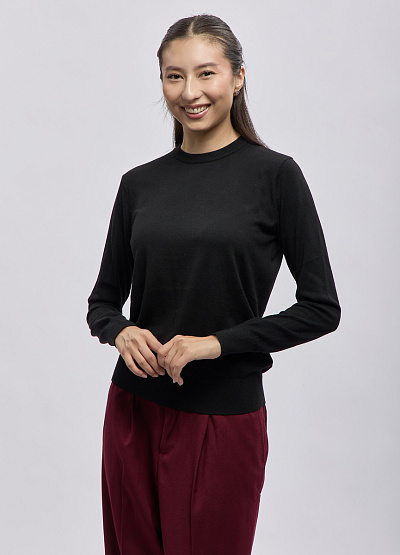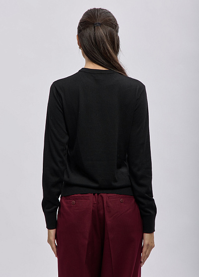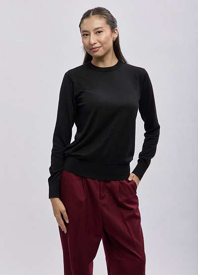 • Женский трикотажный джемпер в базовом чёрном цвете — универсальная модель для повседневного и офисного гардероба. Лаконичный дизайн с круглым вырезом подчёркивает аккуратный силуэт и позволяет легко сочетать изделие с классическими брюками, юбками или джинсами. Мягкий и эластичный трикотаж обеспечивает комфортную посадку и приятные ощущения при носке в течение всего дня.