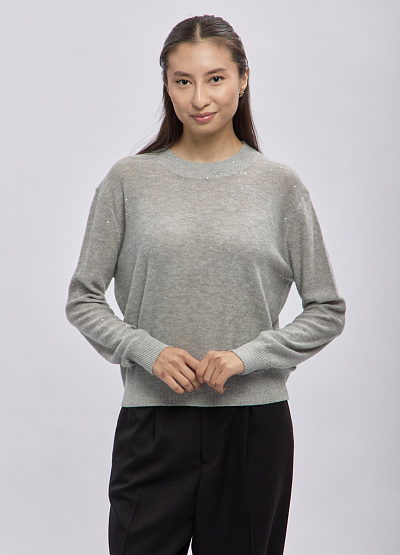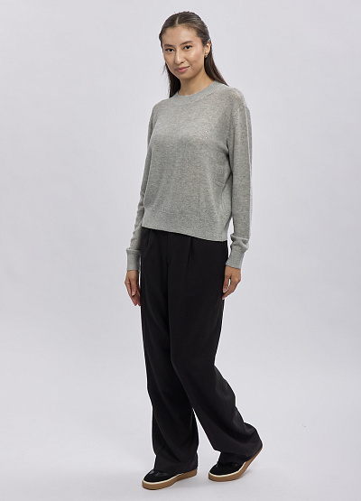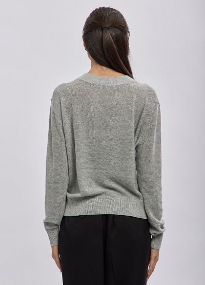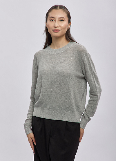 • Женский свитер Thomas Graf в благородном сером оттенке — идеальное сочетание минимализма и лёгкого сияния. Мягкая трикотажная ткань украшена деликатными мерцающими вкраплениями, которые добавляют образу женственности и ненавязчивого шика. Свободный крой дарит комфорт и отлично садится на фигуру, подчёркивая естественную линию плеч. Универсальная базовая модель станет любимой частью гардероба на каждый день.