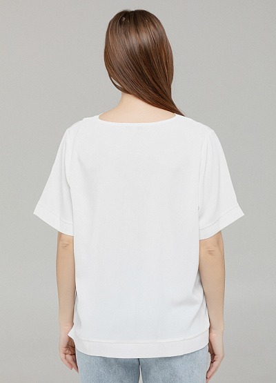 • Свободная футболка в белом цвете — изящное сочетание комфорта и акцента.