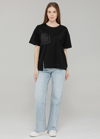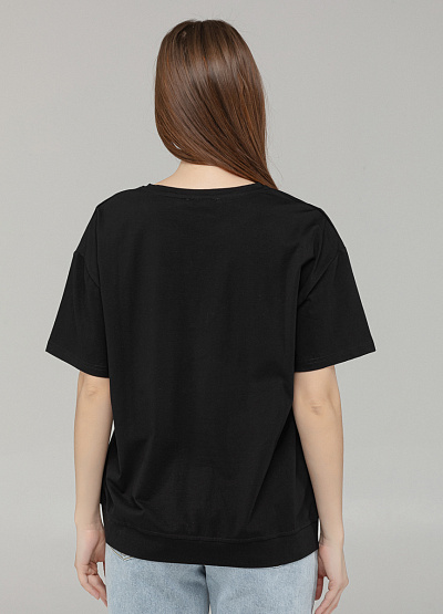 • Лаконичная, но с характером — базовая футболка чёрного цвета в расслабленном крое.