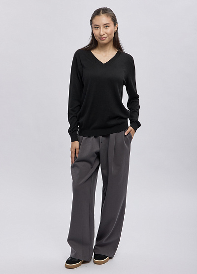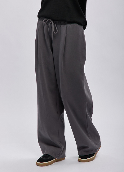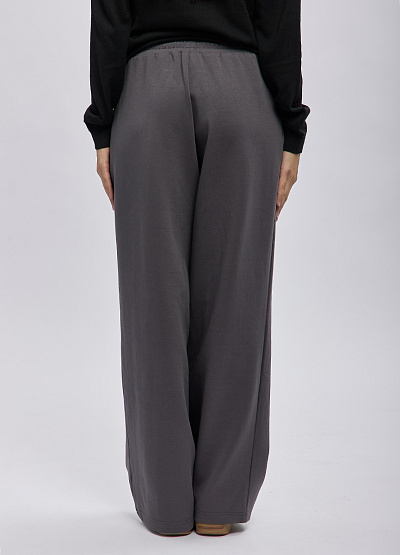 • Женские широкие брюки Thomas Graf в благородном графитовом оттенке — идеальный выбор для тех, кто ценит комфорт без ущерба для стиля. Модель выполнена из мягкого трикотажа, который приятно ощущается на коже и обеспечивает максимальную свободу движений. Свободный силуэт и аккуратные складки визуально вытягивают ноги, создавая плавный и элегантный силуэт. Эластичный пояс со шнурком позволяет легко регулировать посадку, делая брюки универсальными для разных типов фигуры.