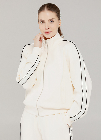 • Добавьте в гардероб стиль и комфорт с этой женской спортивной толстовкой в молочном цвете. Модель выполнена из мягкого трикотажа, который приятно прилегает к телу и обеспечивает свободу движений. Контрастные чёрные лампасы по рукавам и штанинам подчёркивают силуэт и добавляют графичности образу.